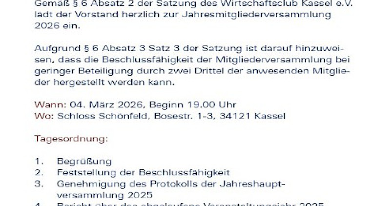 DER WIRTSCHAFTSCLUB KASSEL E.V. wurde Anfang des Jahres 2004 gegründet. Er ist ein Zusammenschluss von Personen, die sich auf gesellschaftlicher Ebene dem wirtschaftlichen Wohl Nordhessens verschrieben haben. Zu diesem Kreis gehören insbesondere Unternehmen, Unternehmer sowie Fach- und Führungskräfte aus dem Bereich der gewerblichen Wirtschaft und der Freien Berufe der Region Kassel.